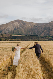 A quick stop in at Kingston to get some lakeside photos for Kara & a few moments at the Garston cemetery for Gordie to put a flower on his Mums grave (it was a buttonhole with āgrooms motherā written on it š). One last pull over at a friends wheat field outside of Athol - what a way to end the day, running through the golden fields! Then we were off to Invercargill for the reception.