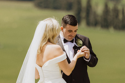 They both got ready at the lodge, with the kids and their bridal party. We did a first look out in the paddock overlooking the mountains. Sam surprised Jono with some custom cuff links she had made with a photo of Jono and his late brother when they were kids ❤️