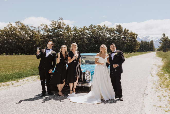 They had this bright blue vintage car the Jono was dying or have a hoon around in, so we went down the road so he could rev it up a little, they could do a champagne pop and gets some photos with the crew!